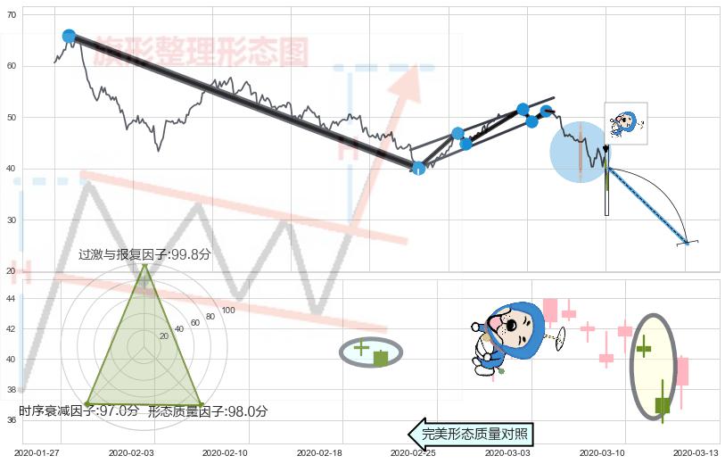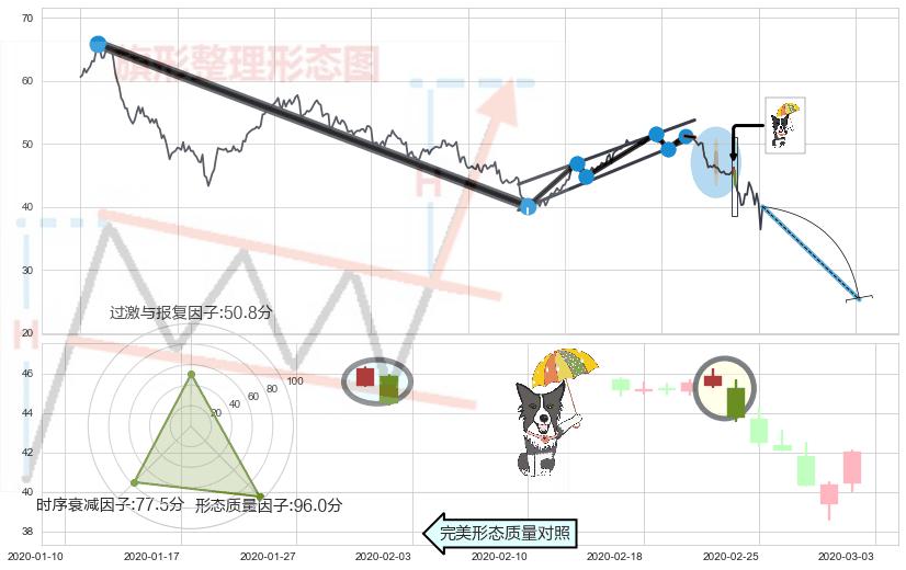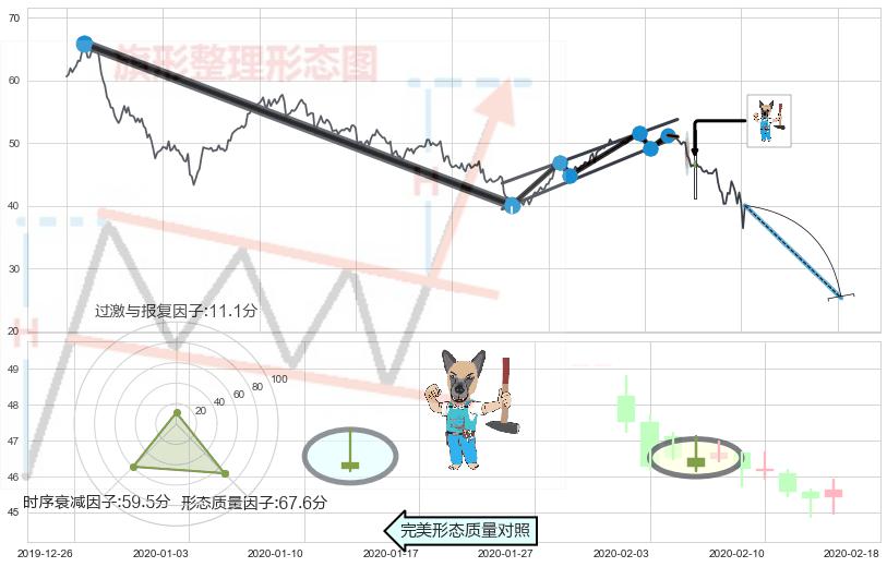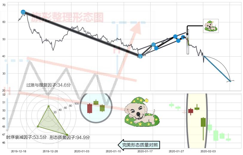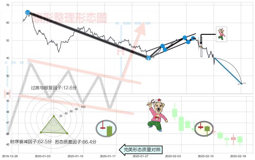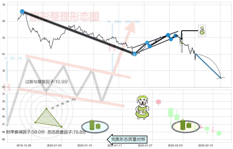 ➢ 顶部尽头线(下山虎) 🔜 升旗形支撑破位转换阻力下跌 综合量化分数:47.39 【中性】