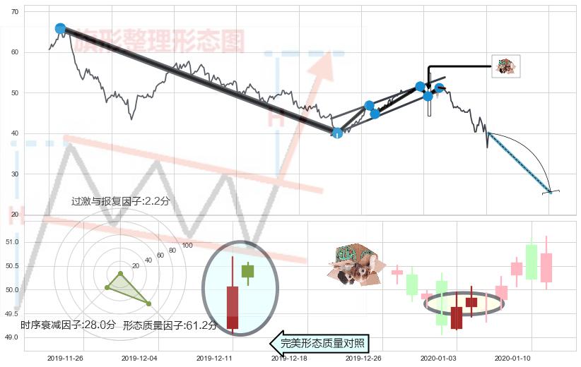 ➢ 🕰 价格走势在2020-01-03至2020-01-06期间形成顶部尽头线(下山虎),残存影响值:-1.51
