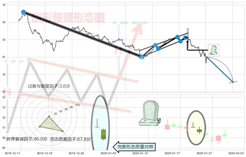 ➢ 🕰 价格走势在2020-01-28至2020-01-30期间形成黄昏之星(夜星),残存影响值:-3.81