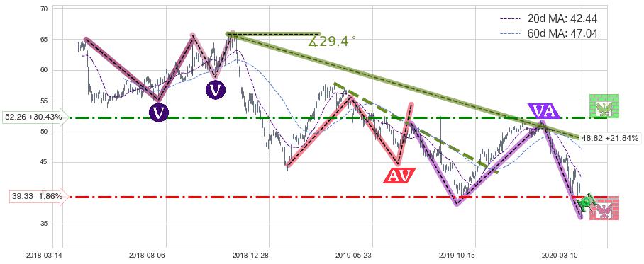♘ 支撑价格位39.33,可信任强度55.31%,距离最后交易2020-03-13形成的收盘价格40.07相差 -1.86%