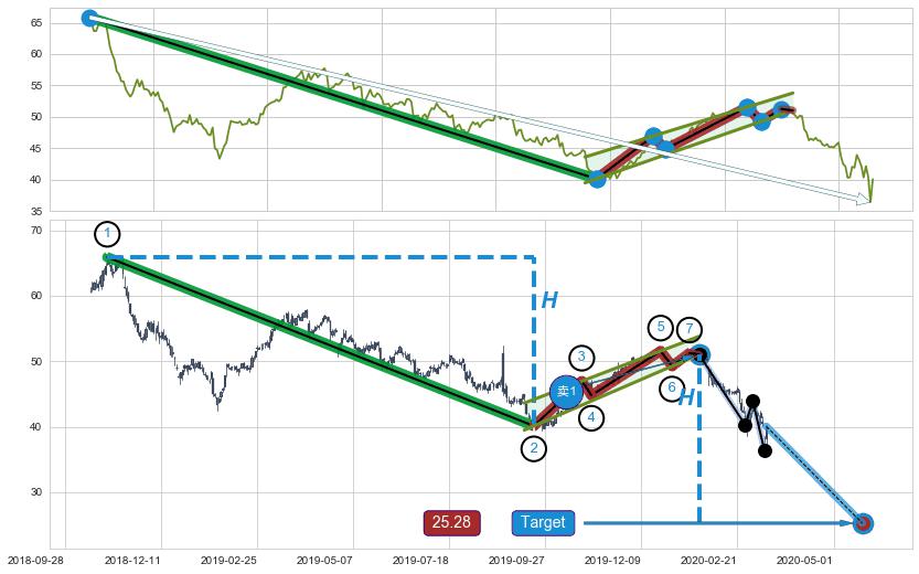 ➣ 【看空】信号叠加后首先朝【目标达成】方向, 之后【反向回撤】方向