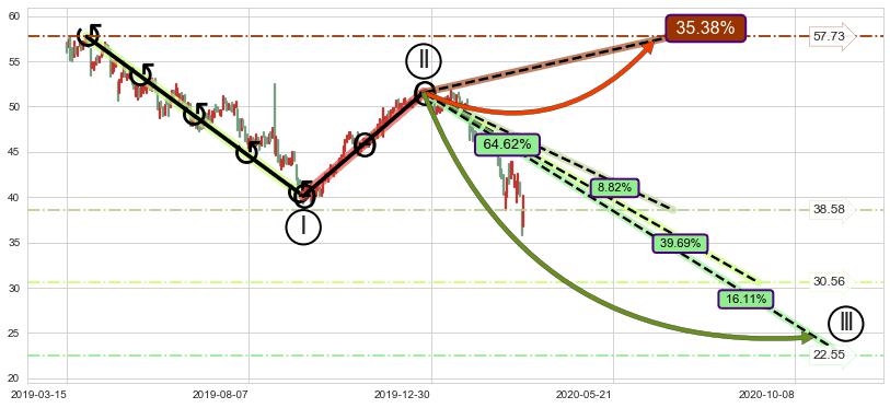 ➣ 调整浪已超过预测的c点位置,后续大趋势循环浪继续下跌概率64.62%,谨慎做多