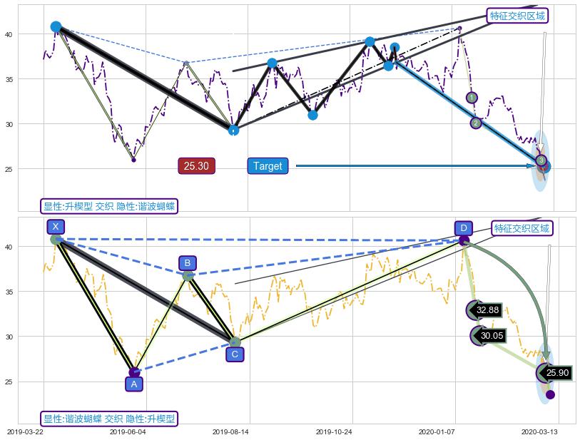 ➣ 已完成【蝴蝶】形态起点X: 2019-04-01, 终点D: 2020-01-13, 共199交易日