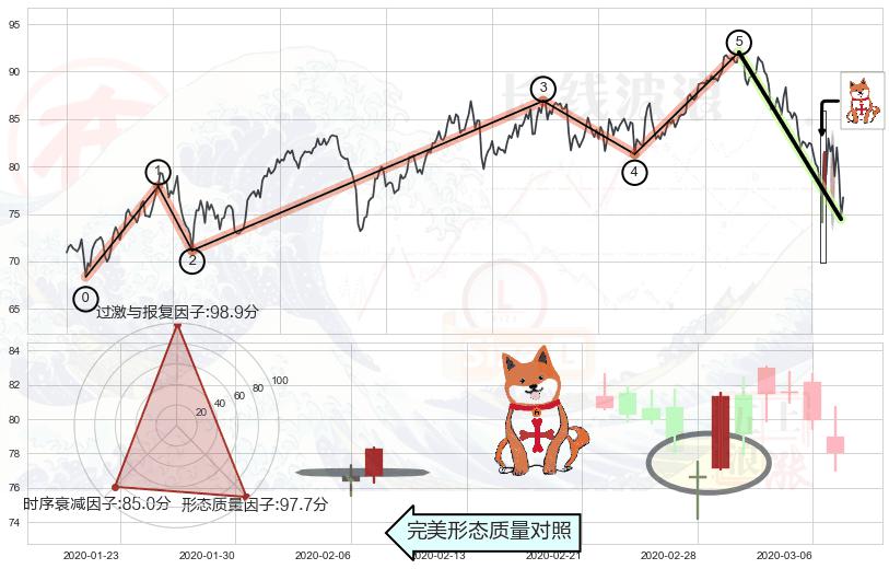 ➢ 🕰 价格走势在2020-03-11至2020-03-12期间形成吊颈线(上吊线),残存影响值:-4.42