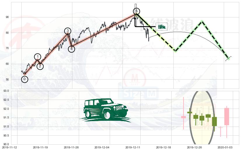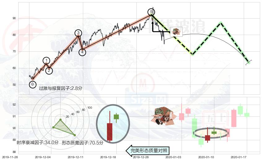 ➢ 🕰 价格走势在2019-12-23至2019-12-30期间形成高档五阴线,残存影响值:-0.60