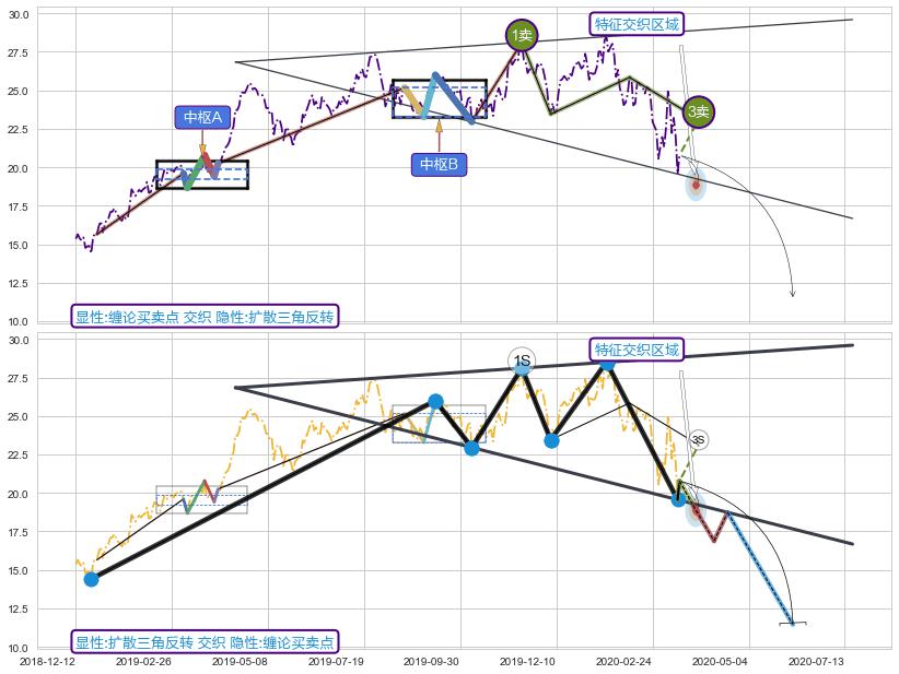 ➢ 缠论买卖点与扩散三角反转信号事件周期长度级别相同,同周期信号事件