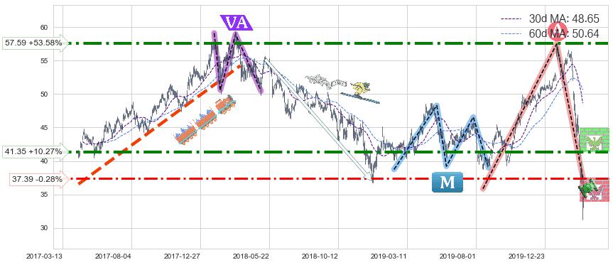 ♘ 支撑价格位37.39,可信任强度63.57%,距离最后交易2020-03-13形成的收盘价格37.50相差 -0.28%
