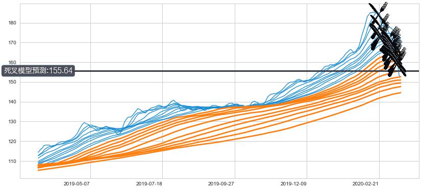 ➢ 90小时均线于(2020-03-10: 160.83)形成【死叉】基于【死叉历史模型】预测死叉后最低波谷价格: 148.76, 死叉后最低价格139.06,已经下跌超出预测最低波谷价格, 预期反弹