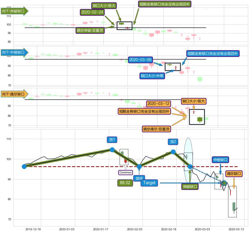 ➢ 2020-03-12形成:向下跳空【竭尽】缺口