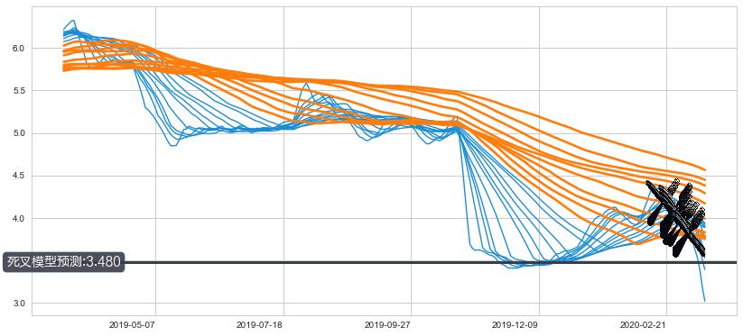 ➣ 90小时均线于(2020-03-04: 3.790)形成【死叉】基于【死叉历史模型】预测死叉后最低波谷价格: 3.156, 死叉后最低价格2.610,已经下跌超出预测最低波谷价格, 预期反弹