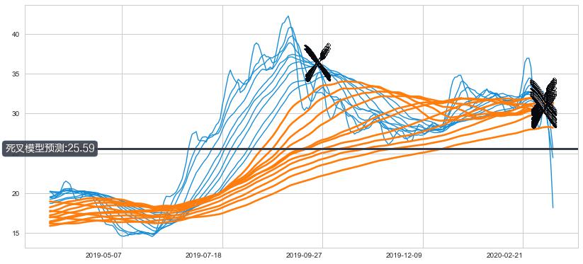 ➣ 70小时均线于(2020-03-06: 31.14)形成【死叉】基于【死叉历史模型】预测死叉后最低波谷价格: 25.12, 死叉后最低价格6.76,已经下跌超出预测最低波谷价格, 预期反弹