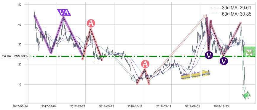 ♘ 阻力价格位24.04,可信任强度81.36%,距离最后交易2020-03-13形成的收盘价格6.76相差 +255.68%