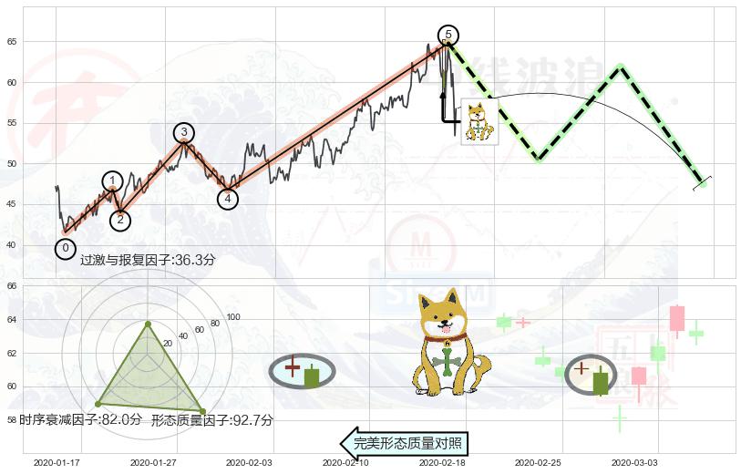 ➣ 顶部尽头线(下山虎) + 波浪理论上涨浪:浪5回调拐点信号叠加后【反向回撤率】偏高,【看空】信号叠加【存续影响降权】