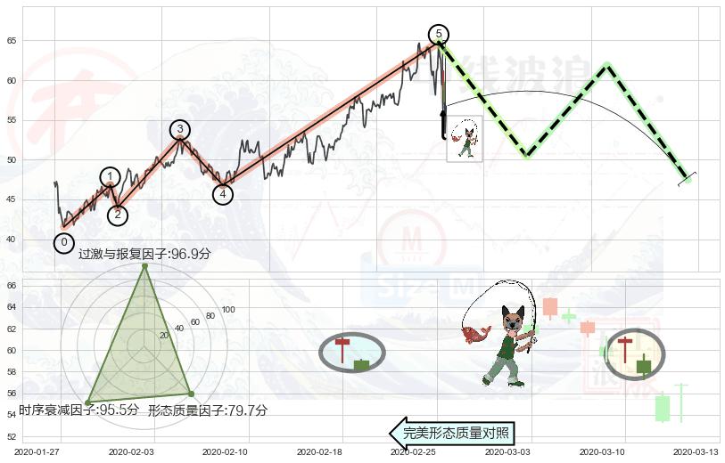 ➢ 顶部尽头线(下山虎) 🔜 波浪理论上涨浪:浪5回调拐点 综合量化分数:43.79 【偏空】