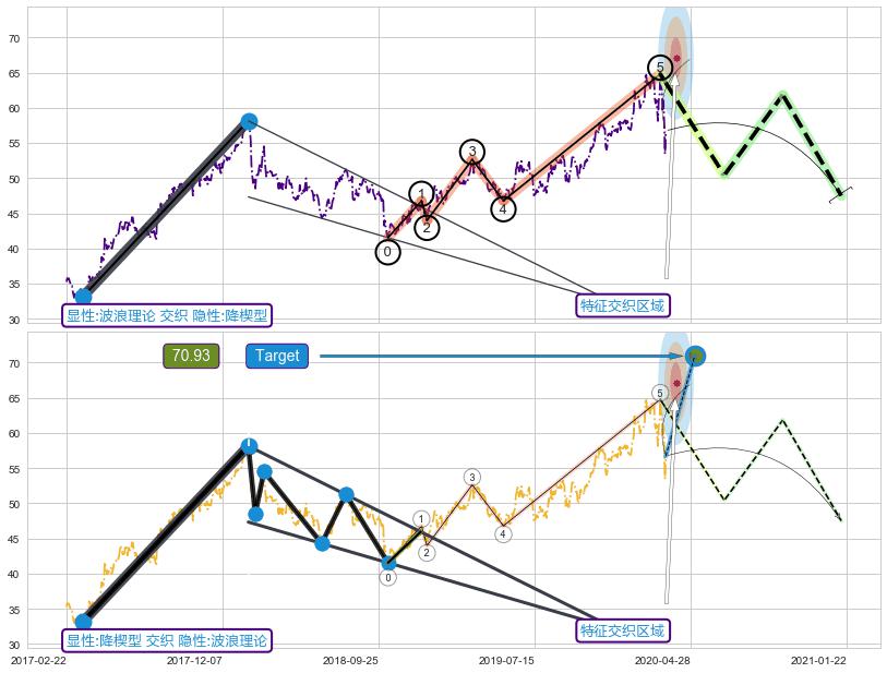 ➢ 波浪理论与降楔型信号事件周期长度级别相同,同周期信号事件