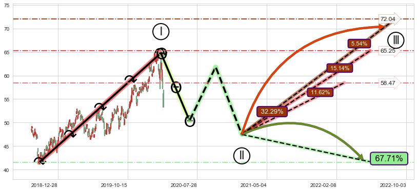 ➣ 循环浪继续向上【平均值】位置(2022-06-22, 65.25),匹配聚类样本比例46.87%, 可能性概率15.14%