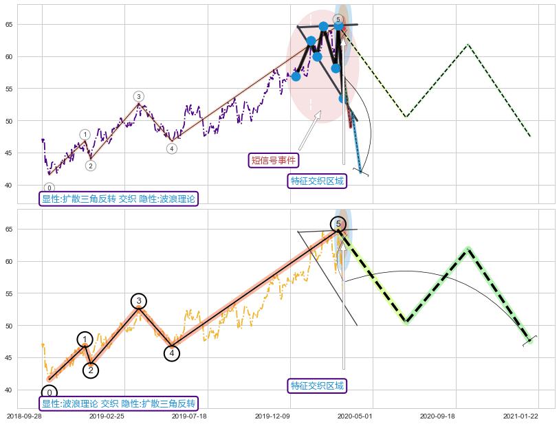 ➢ 扩散三角反转属【短级别信号事件】降楔型属【长级别信号事件】长短周期组合信号事件, 短长事件长度比13.59%