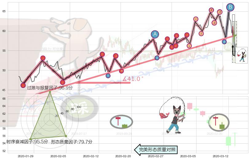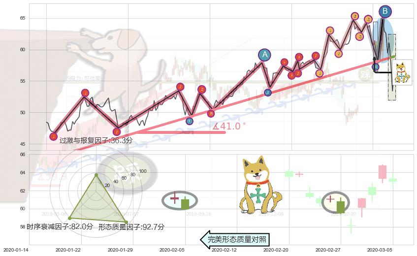 ➢ 2019-05-16-2020-03-11上升趋势存在反转[风险],其原上升趋势的支撑位(58.90)已破位[强阻力信号],原上升趋势角度: 41.0˚