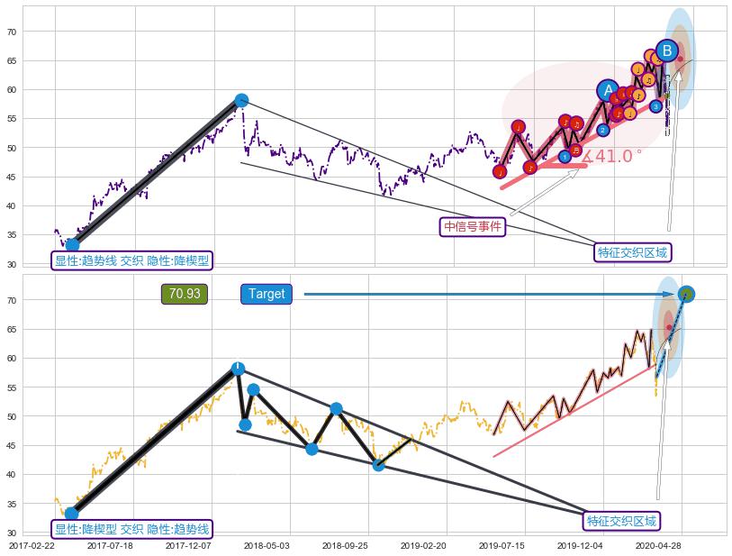➢ 趋势线属【中级别信号事件】降楔型属【长级别信号事件】中长周期组合信号事件,中长事件长度比47.47%
