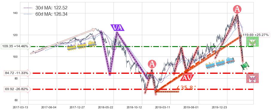 ♘ 阻力价格位109.35,可信任强度62.54%,距离最后交易2020-03-13形成的收盘价格95.54相差 +14.46%