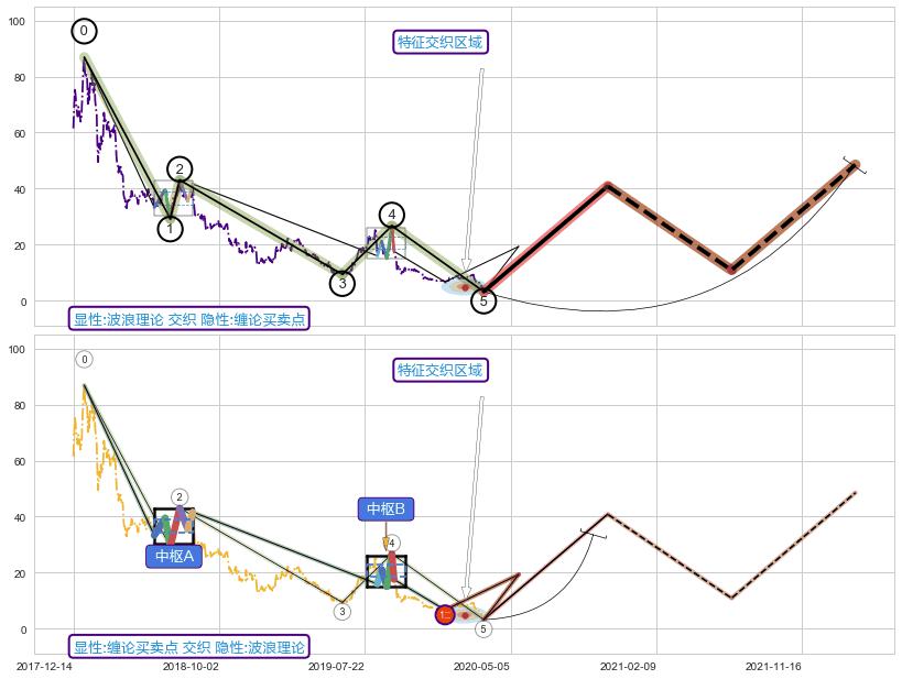 ➣ 缠论买卖点:下降缠中枢AB形成后猜想拐点1买已到达,猜想后续持续拉升(均值回复)