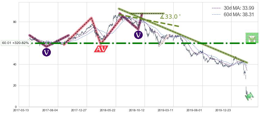 ♘ 阻力价格位60.01,可信任强度85.43%,距离最后交易2020-03-13形成的收盘价格14.26相差 +320.82%