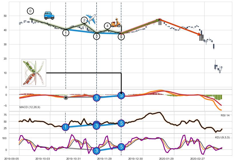 ➣ MACD, RSI, KDJ走势都出现【常规背离】反转信号增强