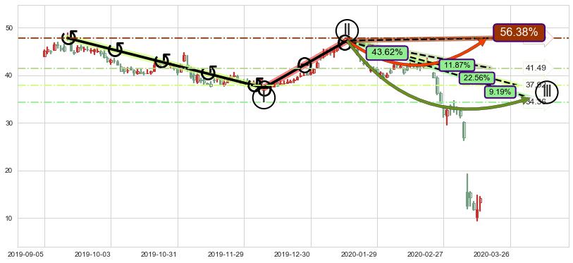 ➣ 循环浪继续向下【平均值】位置(2020-03-30, 37.92),匹配聚类样本比例51.72%, 可能性概率22.56%