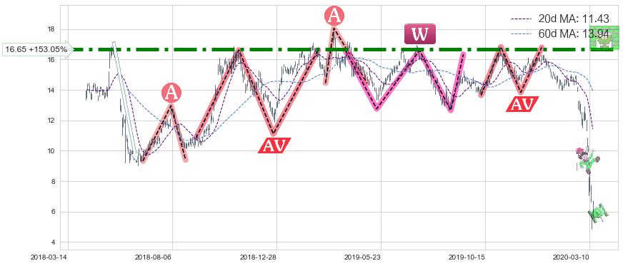 ♘ 阻力价格位16.65,可信任强度99.00%,距离最后交易2020-03-13形成的收盘价格6.58相差 +153.05%