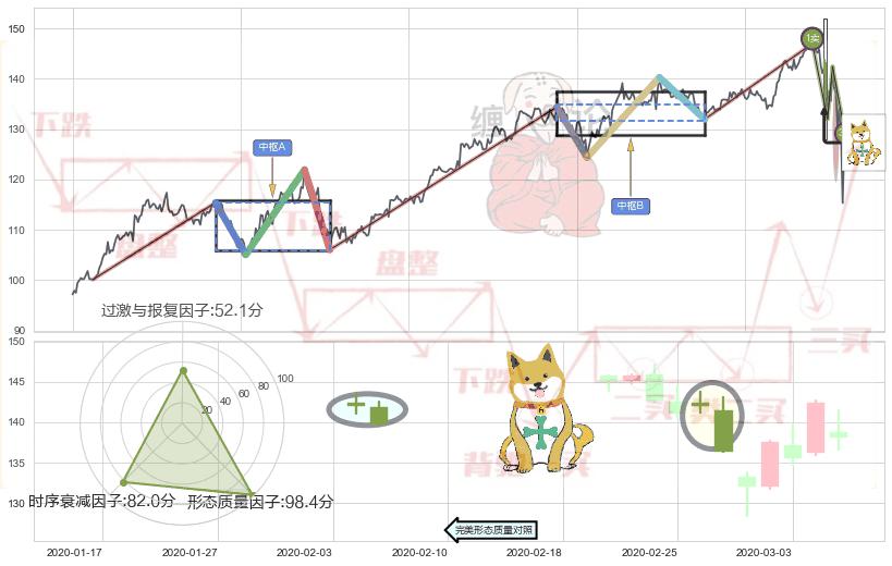➢ 🕰 价格走势在2020-02-18至2020-02-24期间形成吊颈线(上吊线),残存影响值:-4.60