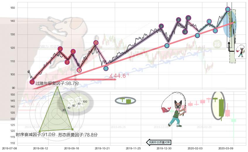 ➣ 2018-05-09-2020-03-11上升趋势存在反转[风险],其原上升趋势的支撑位(139.21)已破位[强阻力信号],原上升趋势角度: 44.6˚