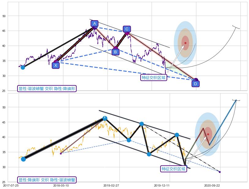 ➢ 谐波螃蟹与降旗形信号事件周期长度级别相同,同周期信号事件