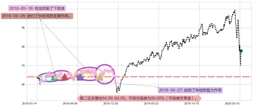 ♘ 支撑价格位64.09,可信任强度99.00%,距离最后交易2020-03-13形成的收盘价格77.82相差 -17.65%