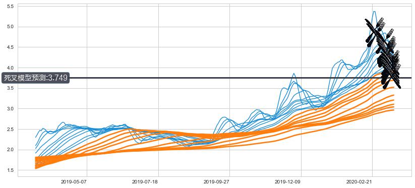 ➣ 70小时均线于(2020-03-10: 3.926)形成【死叉】基于【死叉历史模型】预测死叉后最低波谷价格: 3.536, 死叉后最低价格3.270,已经下跌超出预测最低波谷价格, 预期反弹