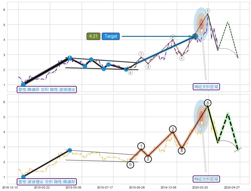 ➢ 【已达成】最小【整理】第一目标价格→(2020-01-21: 4.21 ), 后续继续【整理】上涨动力微弱,上涨较小