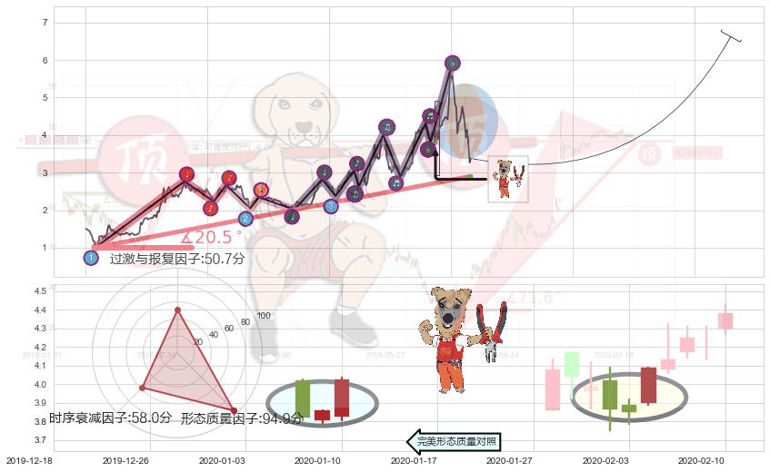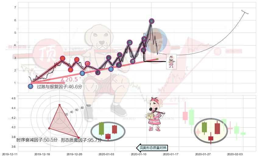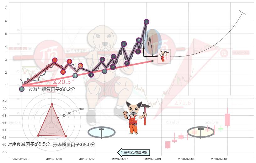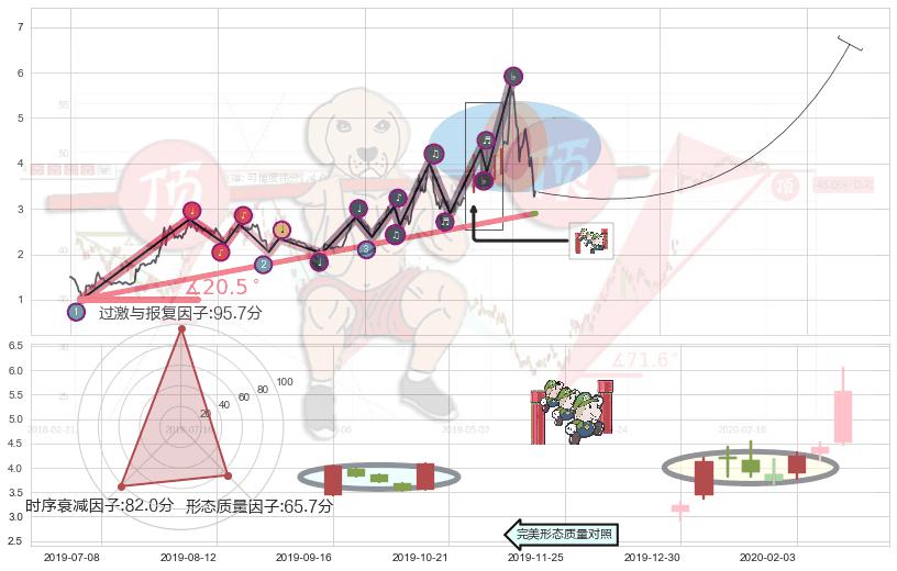 ➢ 🕰 价格走势在2020-01-06至2020-02-03期间形成上升三部曲(升势三鸦),残存影响值:2.41
