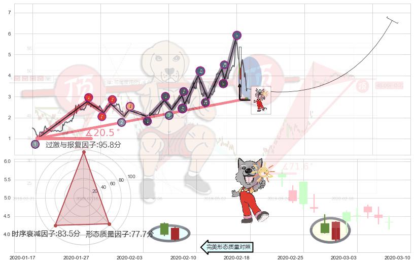 从2018-12-20至2020-03-11,共包含307个交易日,阶段股价上涨161.80%,阶段股价变动位移路程比: 1 : 5,上涨趋势角度: 20.5