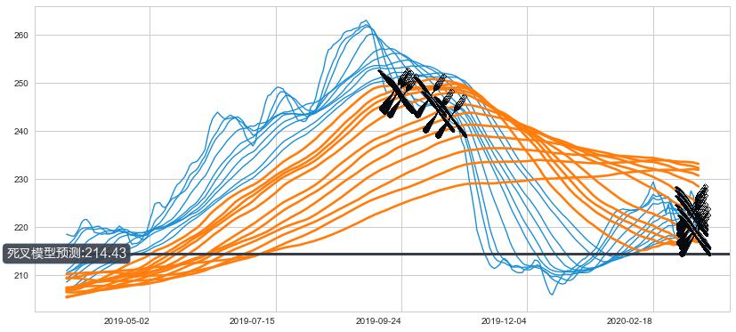 📉 多条均线基于【死叉历史模型】预测最低波谷价格的平均值: 214.43