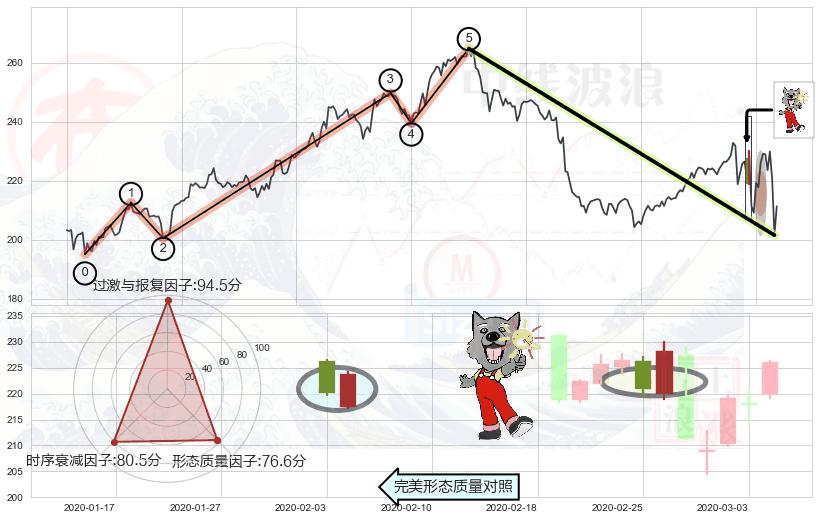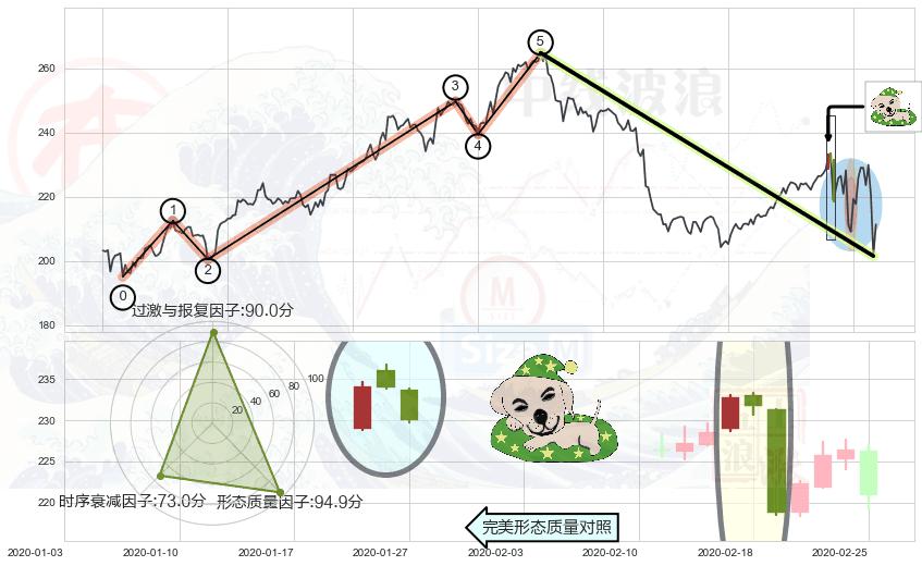 ➢ 黄昏之星(夜星) 🔜 波浪理论击穿破位C点继续下跌 综合量化分数:47.33 【中性】