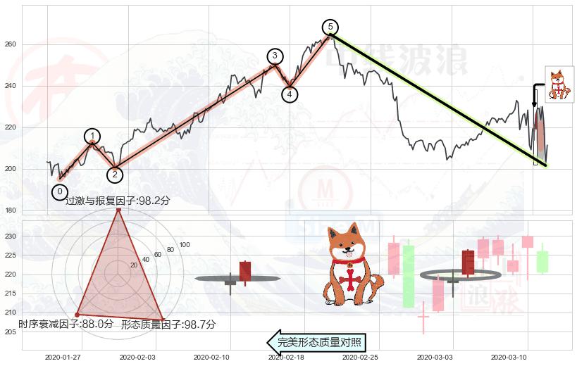 ➣ 下降三部曲(降势三鹤) + 波浪理论击穿破位C点继续下跌信号叠加后【反向回撤率】偏高,【看空】信号叠加【存续影响降权】