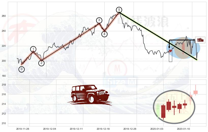 ➢ 波浪理论:猜想击穿破位c点后继续下跌 → 下跌 → 风险信号 → 小趋势跟踪