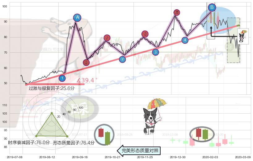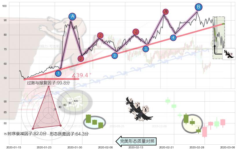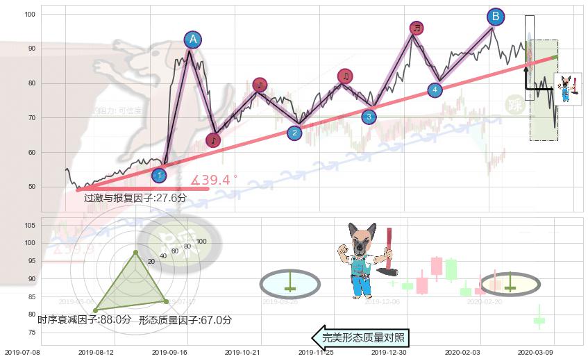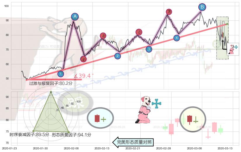➢ 2019-01-29-2020-03-11上升趋势存在反转[风险],其原上升趋势的支撑位(87.61)已破位[强阻力信号],原上升趋势角度: 39.4˚