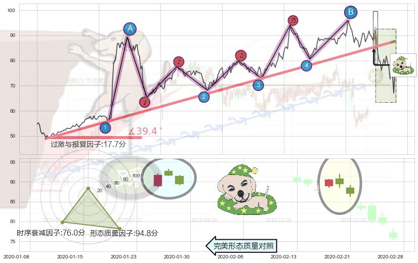 ➢ 🕰 价格走势在2020-02-19至2020-02-21期间形成黄昏之星(夜星),残存影响值:-3.74