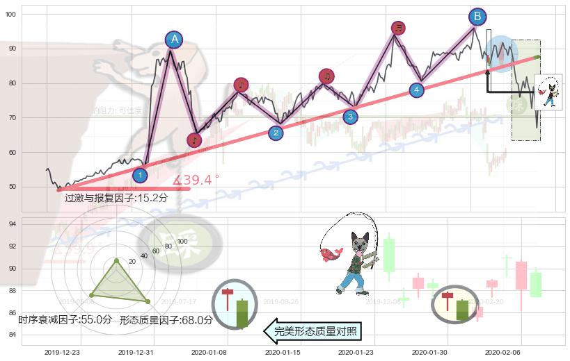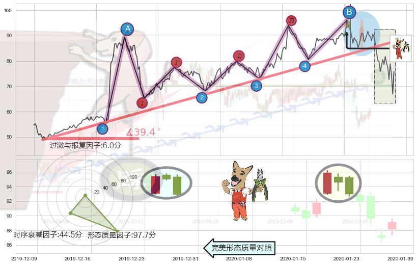 ➢ 🕰 价格走势在2020-01-30至2020-01-31期间形成吊颈线(上吊线),残存影响值:-2.00