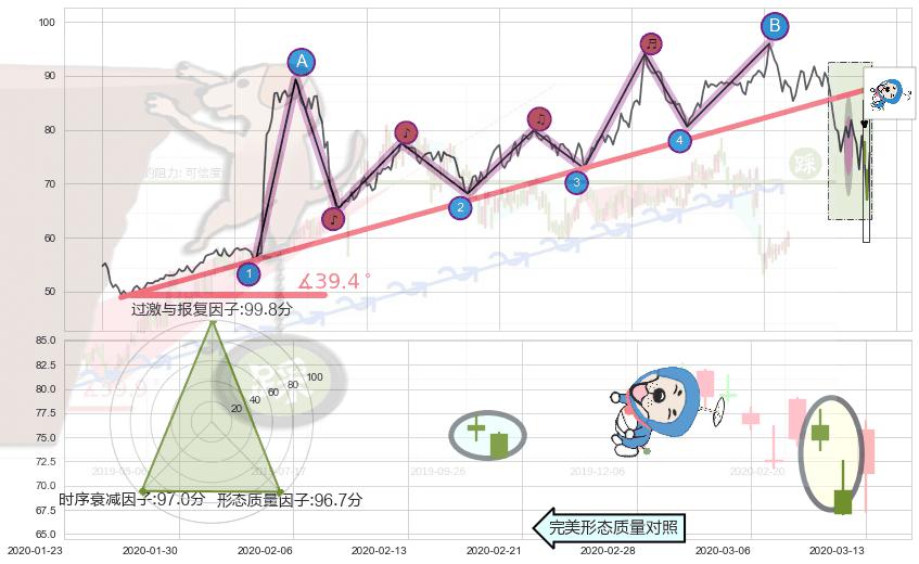 从2019-01-29至2020-03-11,共包含282个交易日,阶段股价上涨50.41%,阶段股价变动位移路程比: 1 : 9,上涨趋势角度: 39.4