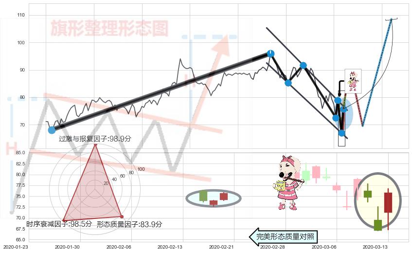 ➣ 【未确认突破,预测即将形成突破】降⚑旗形起点:2019-08-06, 预测突破点:2020-03-16,形态共154交易日