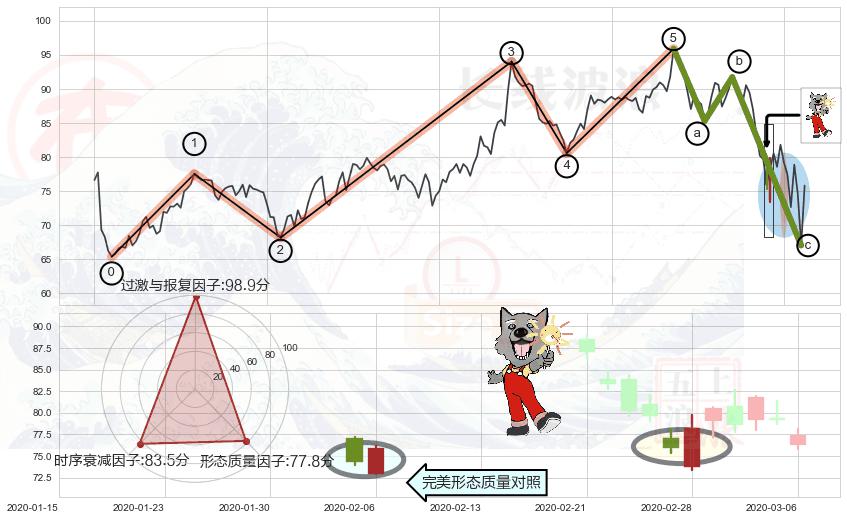 ➣ ['回调abc识别为: 【锯齿型调整浪】 ', '锯齿型:子浪535结构 ⓑ点振幅较小,ⓒ点继续发力远超ⓐ点结束位置']