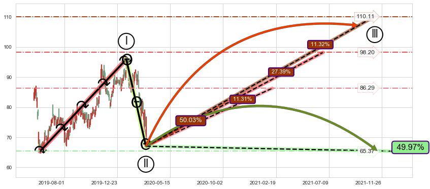 ➣ 循环浪继续向上【平均值】位置(2021-06-24, 98.20),匹配聚类样本比例54.75%, 可能性概率27.39%