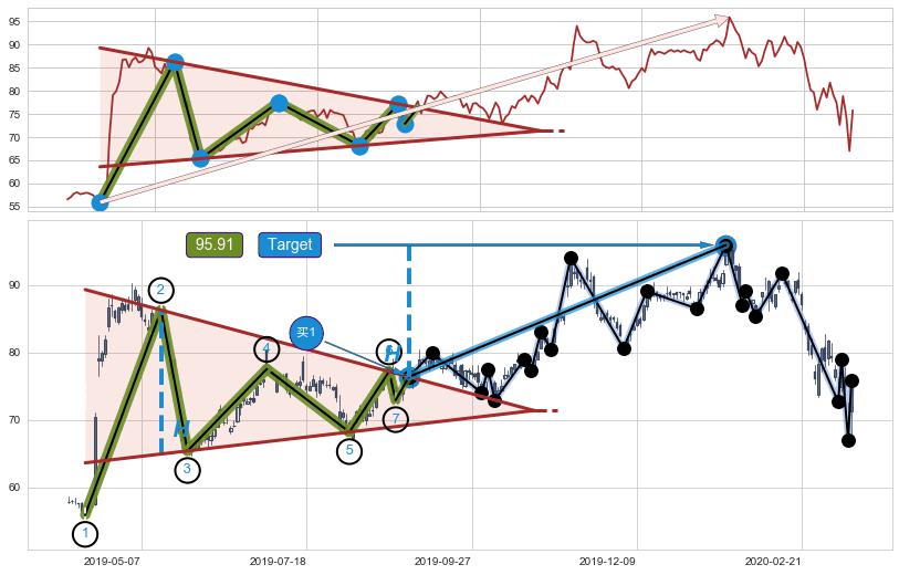 ➢ 【买1】: 激进型 买点 →(2019-08-30: 76.36 )形成突破上升【对称】三角形整理【整理】形态