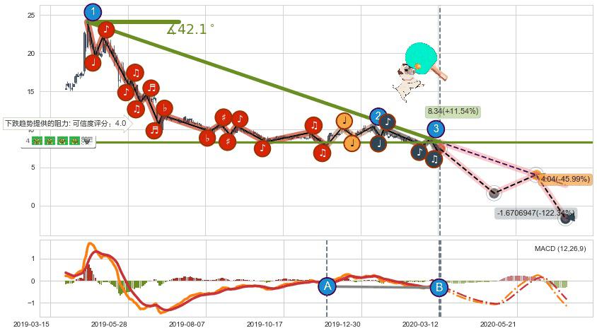 ➣ 预测:2020-06-09,【试探阻力】稳定目前下跌趋势的前提下,预测价格:4.04